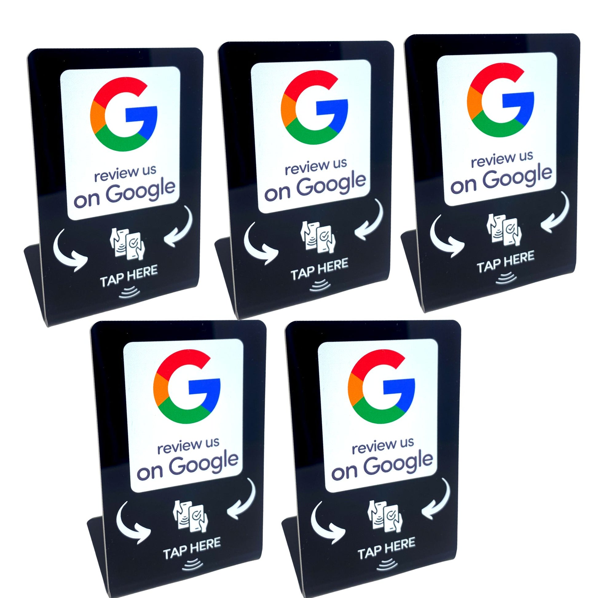 This table top stand is designed with an NFC chip that will take you to your Google review page when tapped with your smartphone. Simply tap the logo and BOOM, you are taken to your webpage to leave a review.